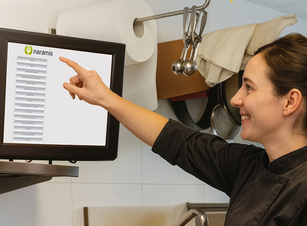 Unser Küchenmonitor unterstützt den Koch optimal bei seinen Arbeitsschritten. Alle Arbeitsbereiche in der Küche werden über den Workflow im Service und anderen Bereichen informiert.